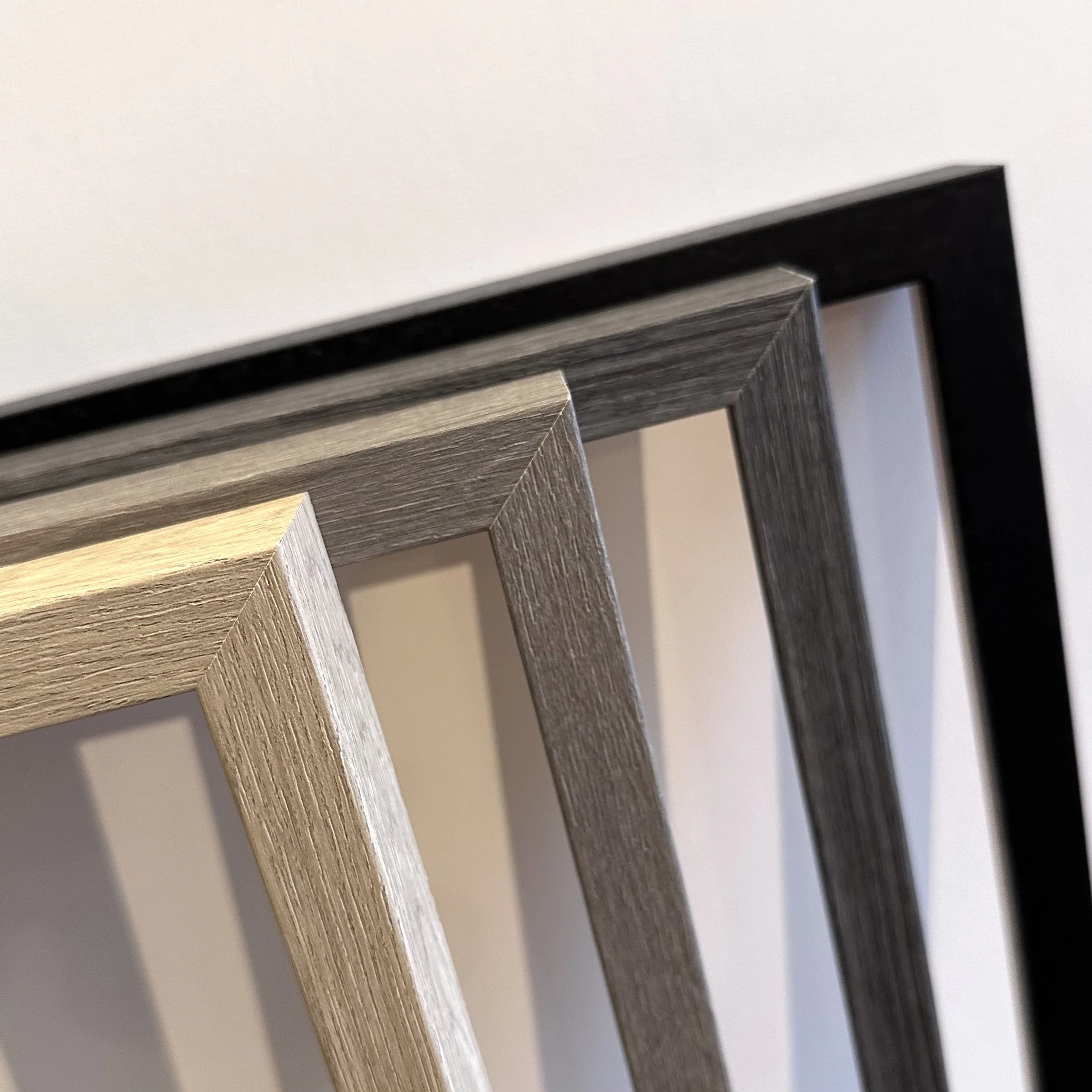 Our frames have a contemporary 20mm flat face and a 33mm depth. All frames come with 2mm float glass, backed with backing board and are ready to hang.