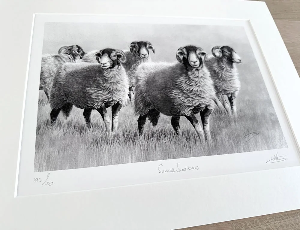 Limited edition prints come mounted in a 1400 micron off-white conservation mountboard, backed with conservation level under-mount and either wrapped in cellophane or framed in a frame of your choice. Open edition prints come single mounted in the same quality mount board and backing board.